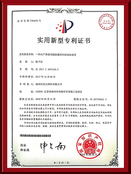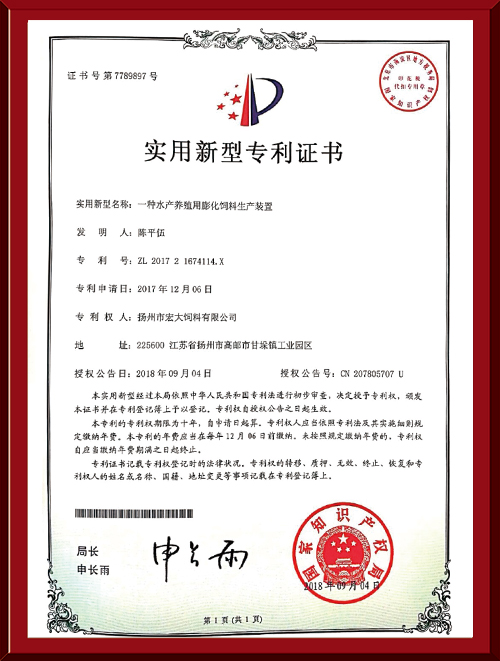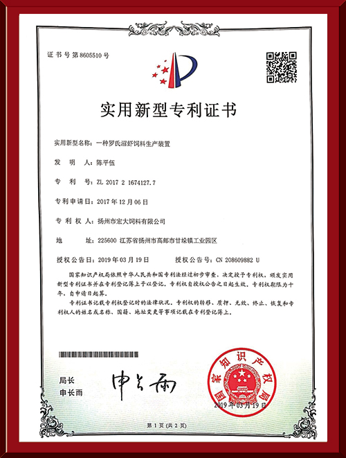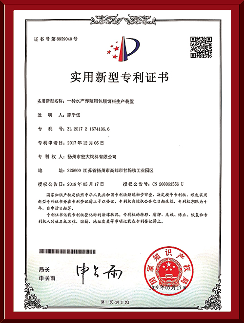 揚(yáng)州市宏大飼料有限公司 揚(yáng)州市宏大飼料有限公司是一家集科研與生產(chǎn)為一體的大型民營(yíng)企業(yè),座落在魚(yú)米之鄉(xiāng)高郵東郊,傍依郵興公路、澄子河,水陸交通便捷,于2002年建成投產(chǎn),占地面積60畝,固定投資1.5億元?,F(xiàn)有7條生產(chǎn)線,其中時(shí)產(chǎn)15噸高檔水產(chǎn)膨化生產(chǎn)線2條,均采用國(guó)內(nèi)先進(jìn)的真空后噴涂技術(shù)和低溫烘干技術(shù)(飼料內(nèi)的各種營(yíng)養(yǎng)不受破損)、臺(tái)灣宜大高檔蝦料生產(chǎn)線2條和魚(yú)飼料生產(chǎn)線3條。